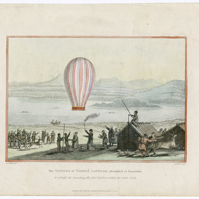 Ballongflygning i Enontekis 1799. Bild ur E.D. Clarke. 1823. Travels in various countries of Europe, Asia and Africa.